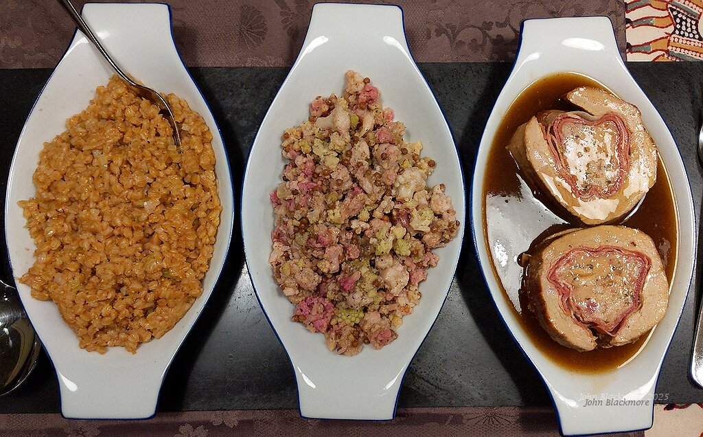 main: Noix de Veau en saltimbocca, risotto de petit épeautre au choux marinés