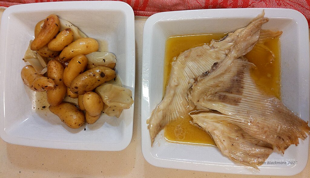 main: Raie de Méditerranée au beurre noisette, grenailles et oignons rôties