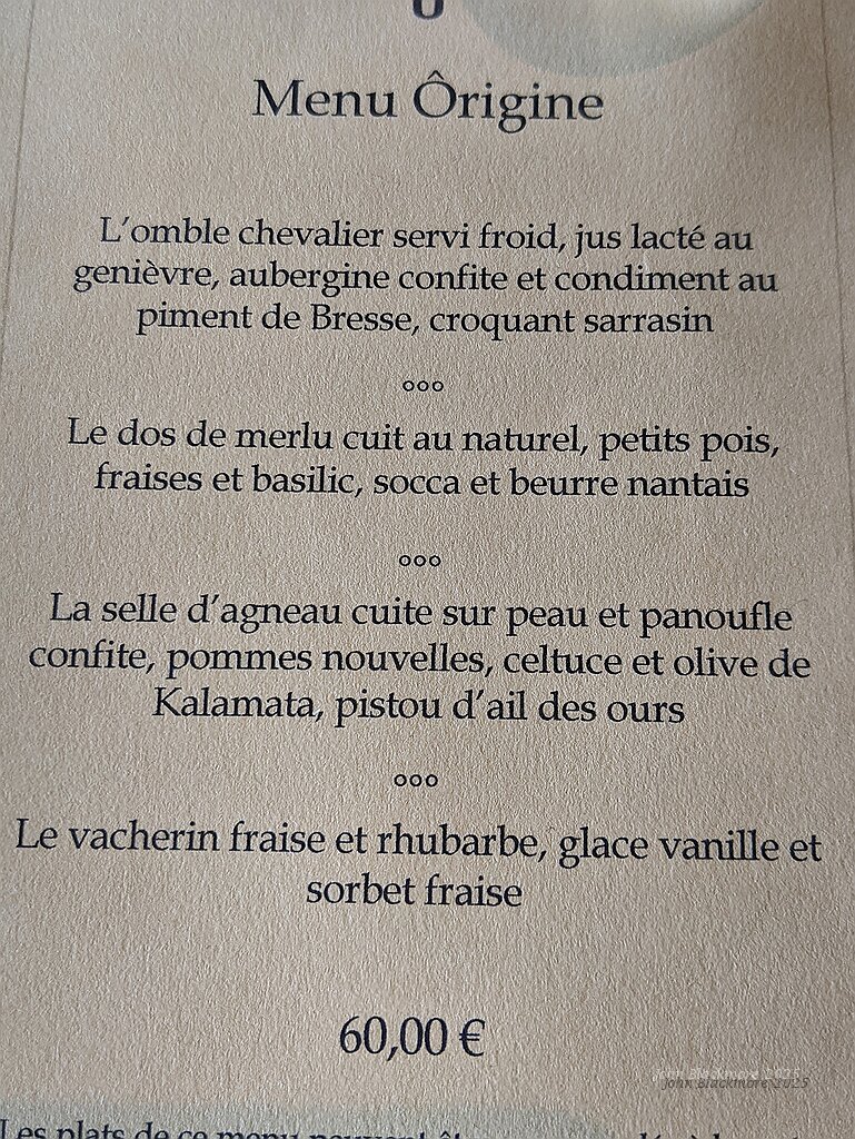 La selle d'agneau cuite sur peau et panoufle confite, pommes nouvelles, celtuce et olive de Kalamata, pistou d'ai1 des ours