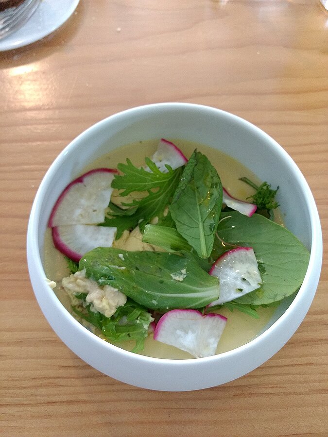 starter: Royale de foie gras fumé, méli mélo de chez Norbert et radis de mai