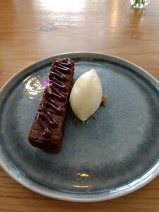 dessert: Brownie au thym, caramel et glace vanille