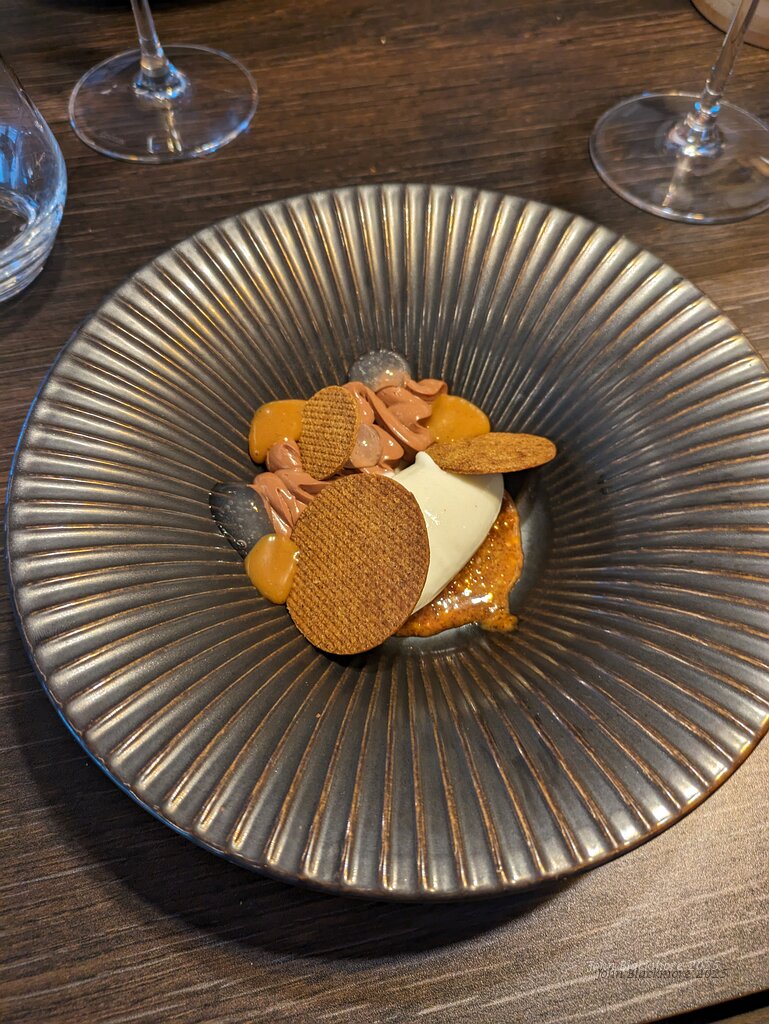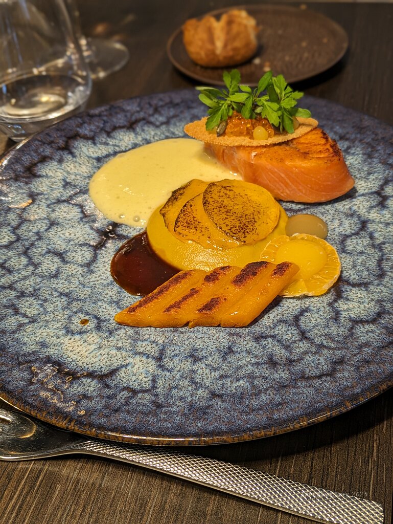 Truite de Xavier Goetschy en croûte de pain – Courges – Clémentines Corse – Tagète des « Plantules »