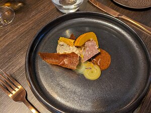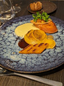 Pâté en « courge », Mousse Foie Gras de Virginie Sainte Fauste – Safran des Payoux – Coing - Noisettes