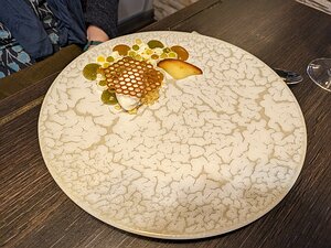 Miel des Vosges et Cistre de nos Prairies - Glace infusée à la cire d’abeille - Citron confit - Madeleine