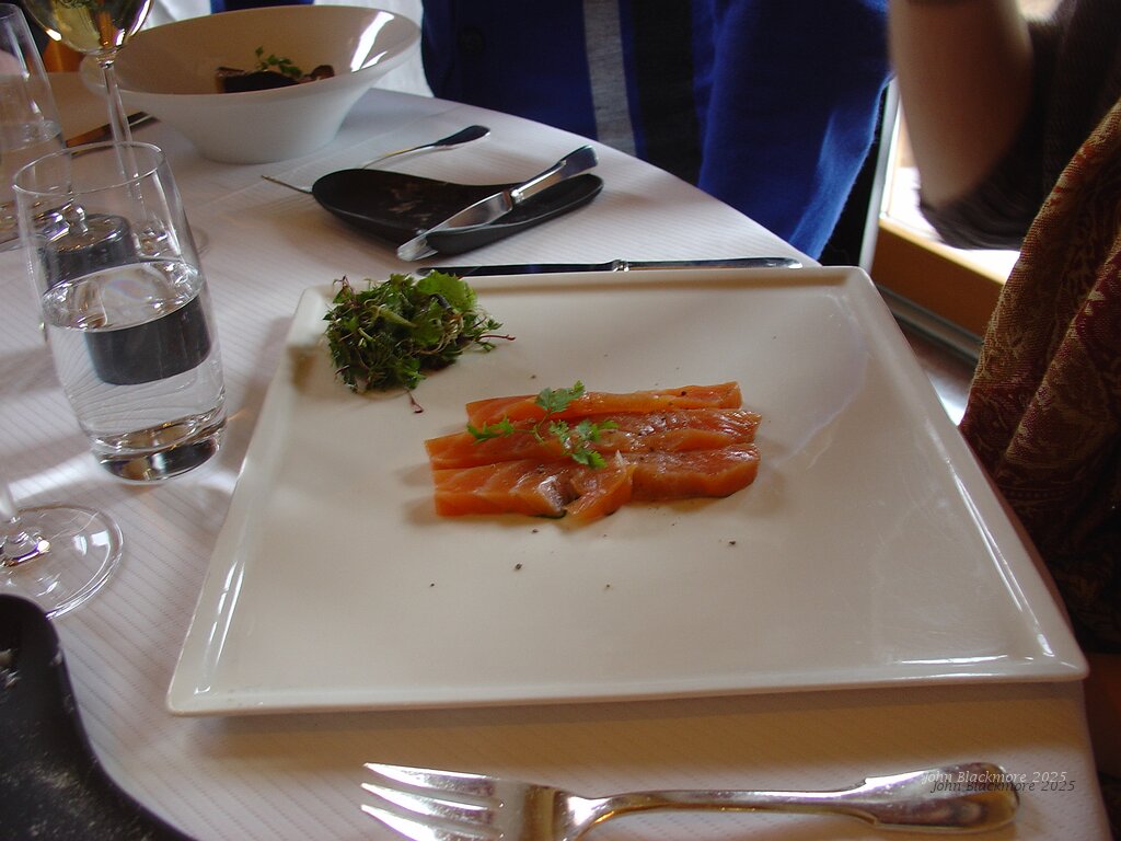 Amuse bouche - Goats cheese on vegetables and cold celery and bacon soup