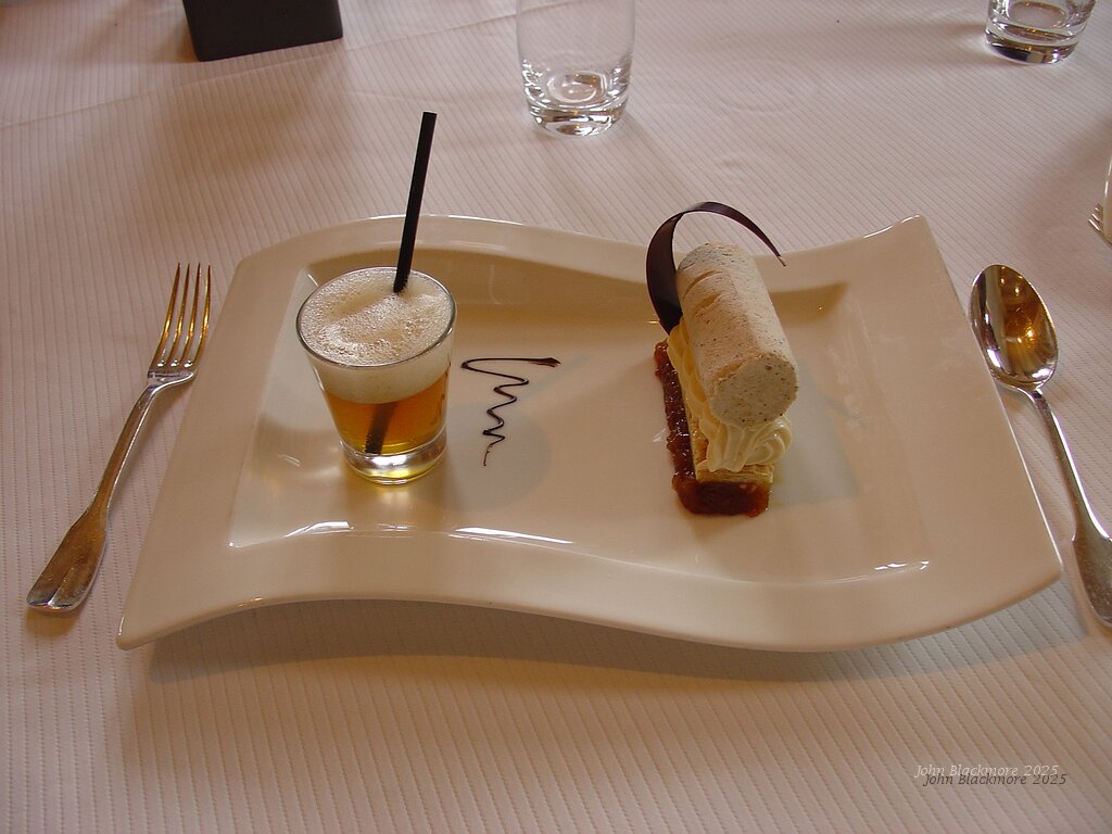 Dessert: Tarte Tatin (!!) topped with cinnamon icecream and with apple juice