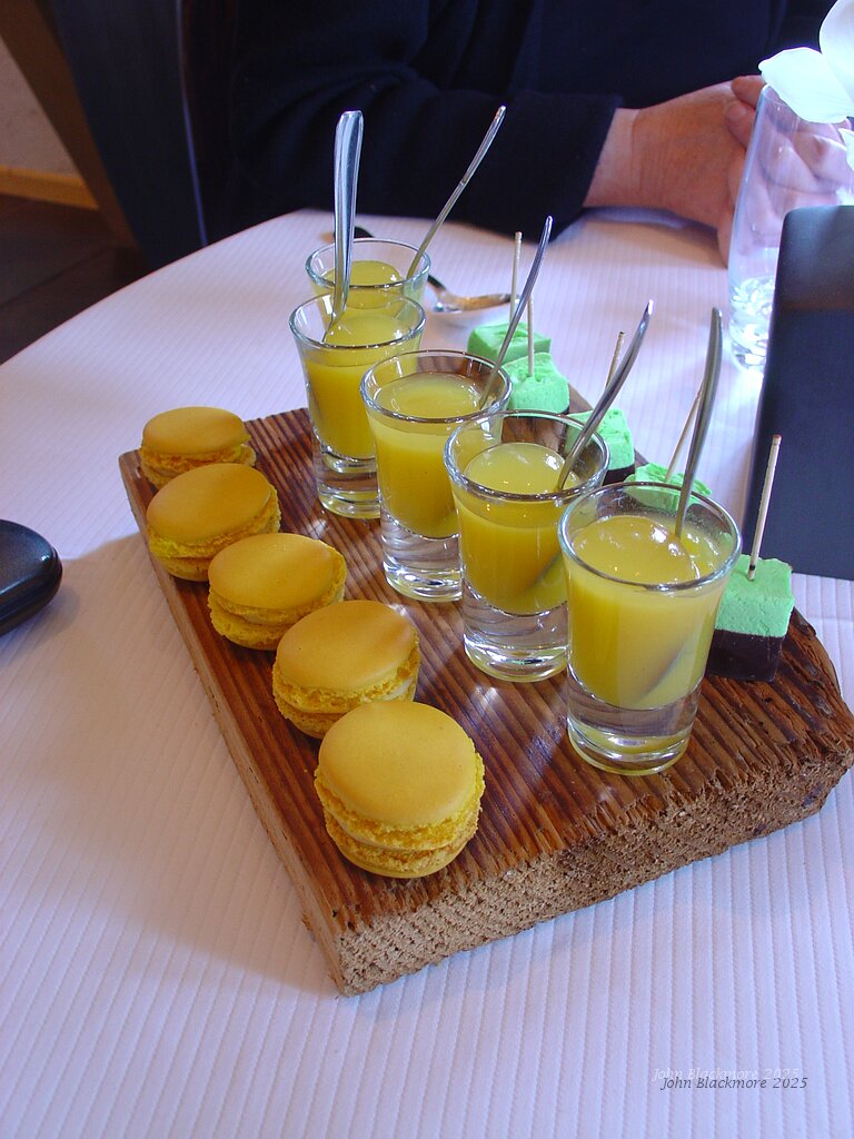 mango macaroons, peppermint and chocolate marshmallows, passion fruit jellies
