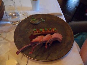 Main: carré d'agneau, panisse au parmesan, caviar d'aubergine