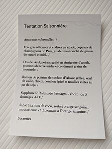 MENU TENTATION SAISONNIÈRE 41 € (55 € with 3 glasses of wine)