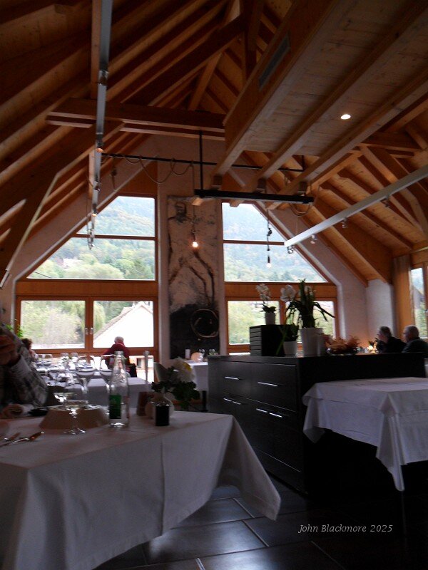 The new (2009) Auberge Frankenbourg dining room with the Vosges beyond