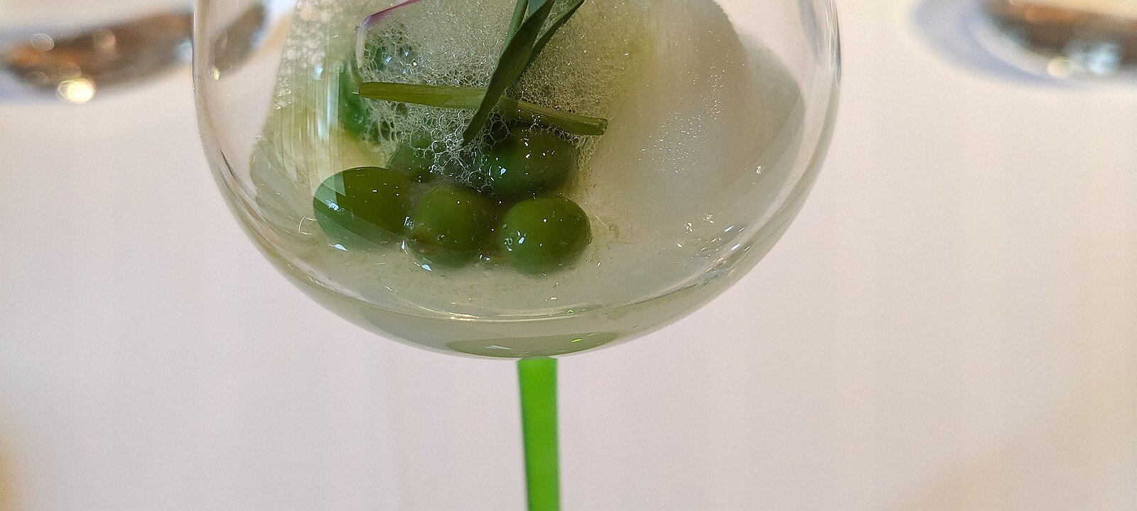 amuse bouche - petit pois lacté, sorbet, gel et muscat