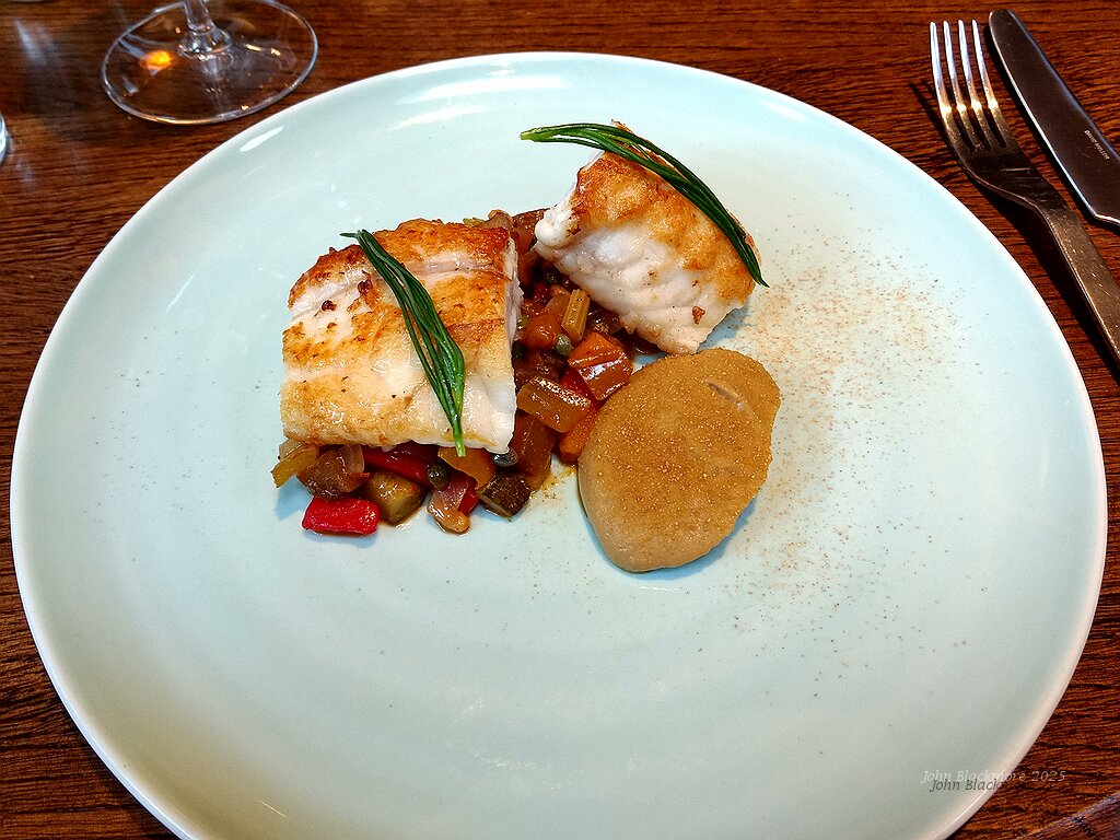 main: Cornish monkfish, new season caponata with roast fennel puree