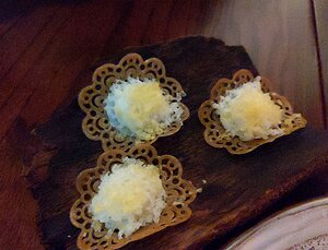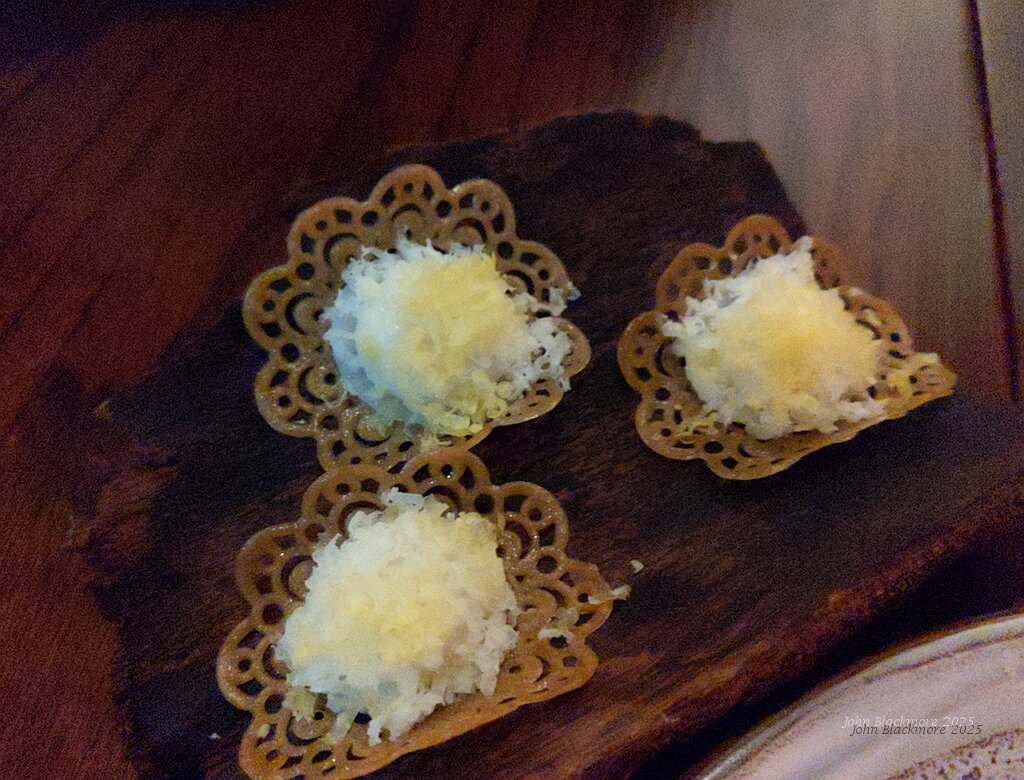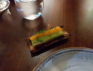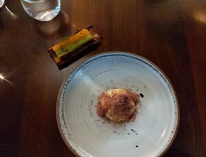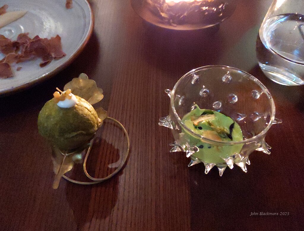 SNACKS - petit-chou, dill, smoked sour cream; Nordic sea bass ceviche