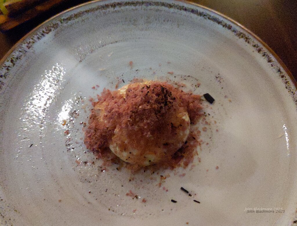 CHARCOAL CREAM vendace roe, ember baked leek, smoked deer