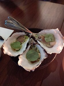 OYSTER FLAMBADOU apple, beurre blanc, nasturtium