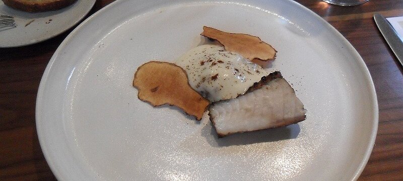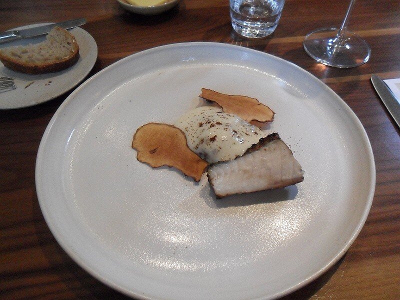 Monkfish Cooked in Malted Barley Oil, Jerusalem Artichoke et Coffee
