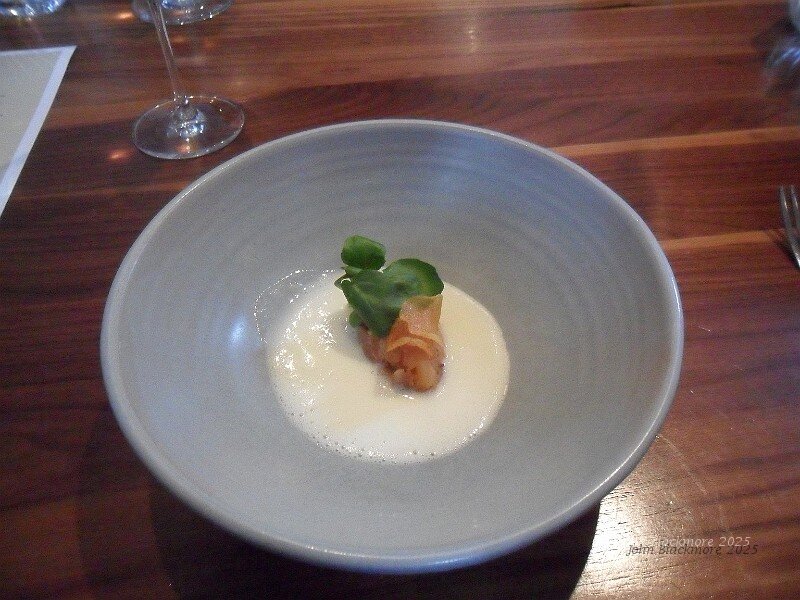 Tartare of Flamed Red Mullet, Pink Fir Potato Soup Et Sansho - paired with Josmeyer pinot blanc