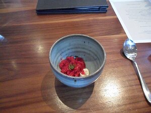 starters - beetroot and apple granita with walnut crream