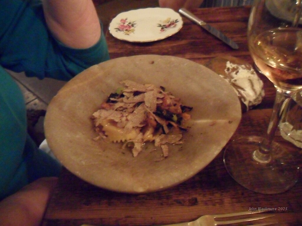 garden: Bone marrow agnolotti, peas, girolles, summer truffle
