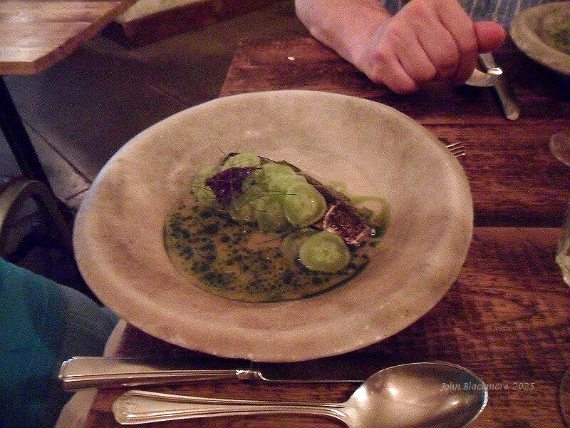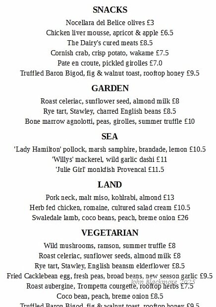 land: Swaledale lamb, coco beans, peach, breme onion....