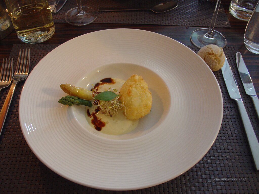 Croustillant d‘oeuf moelleux et Asperges, Mayonnaise tiède