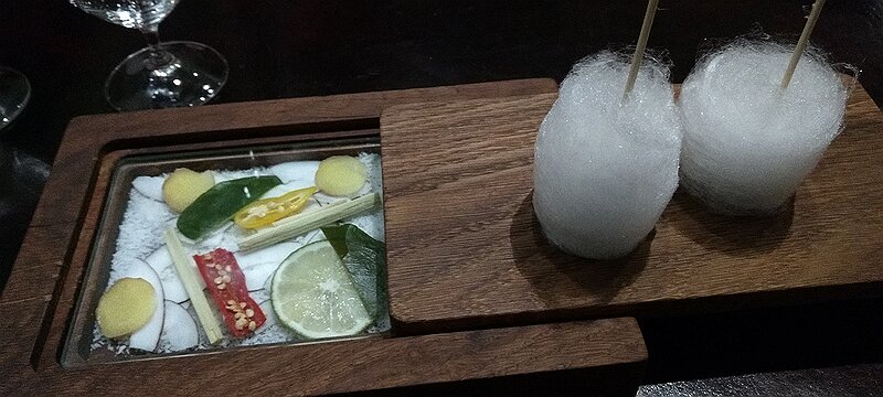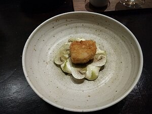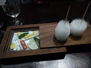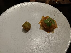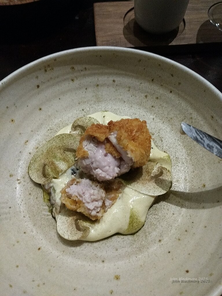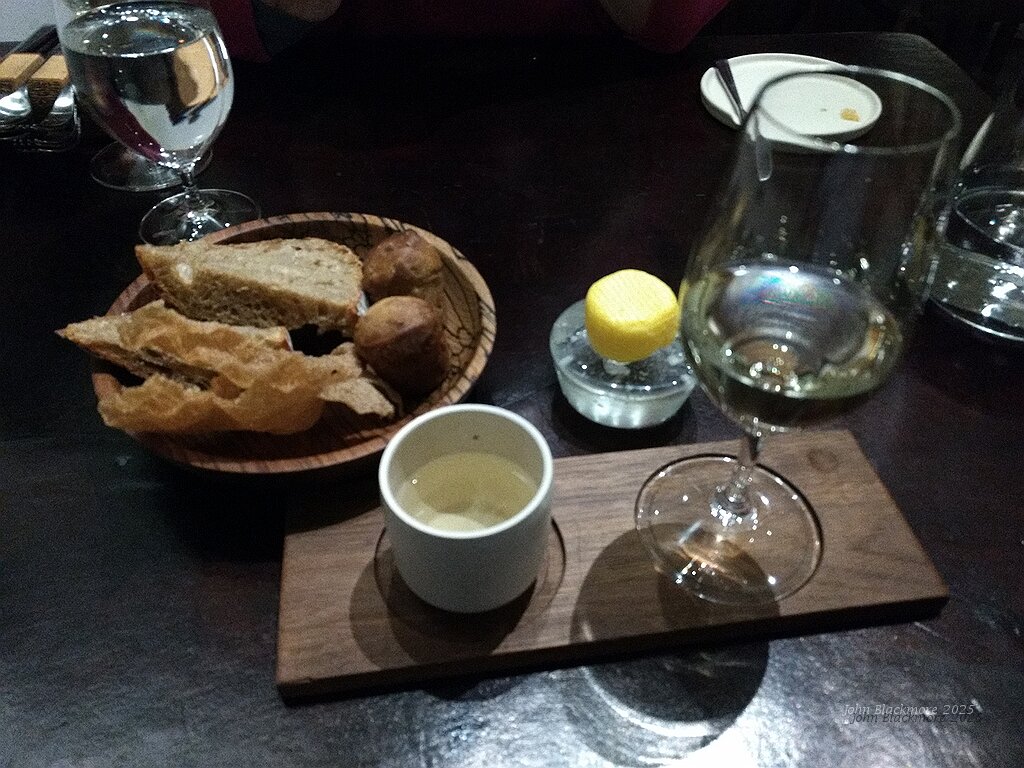 bread, treacle buns, crisp with the sake for the crab satay and the wine for the veal croquette