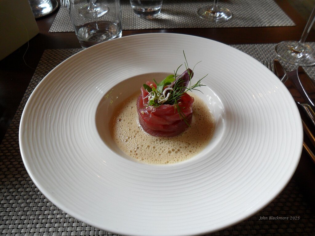 starter: Fettuccini de Thon Albacore mariner a la sauce soja-gingembre, Salpicon de concombres à huile de sésame