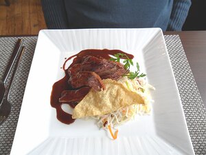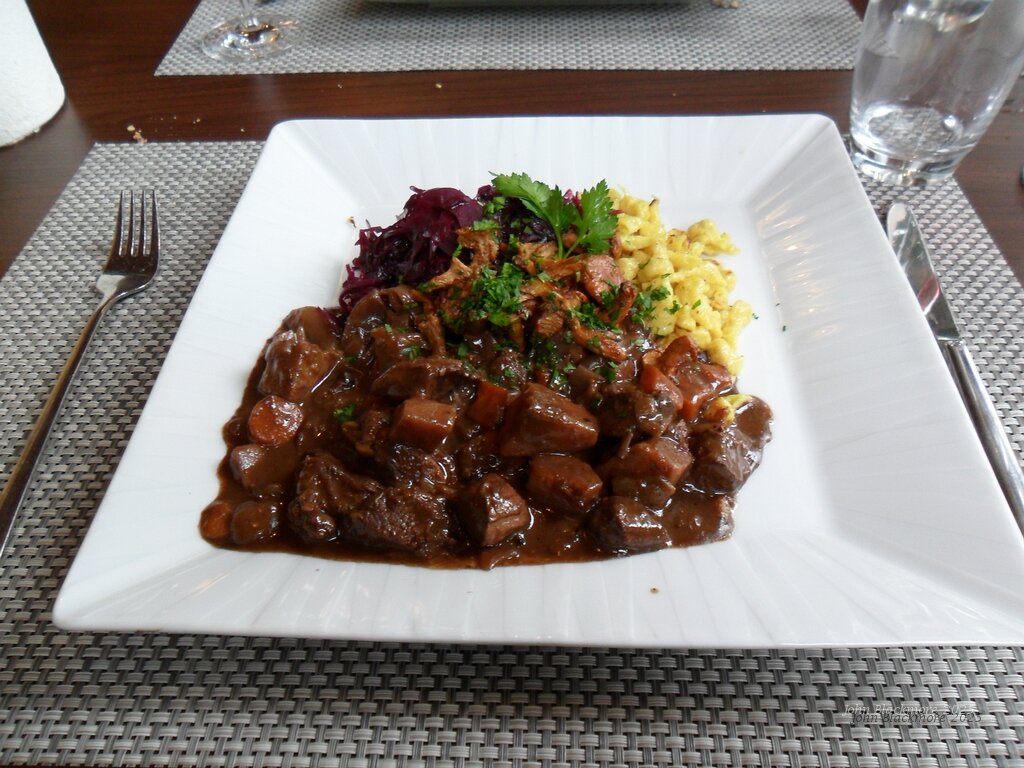 Déjeuner d'Affaires main: Civet de biche, spätzles, chou rouge