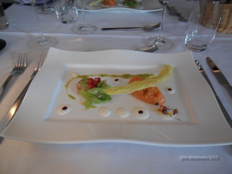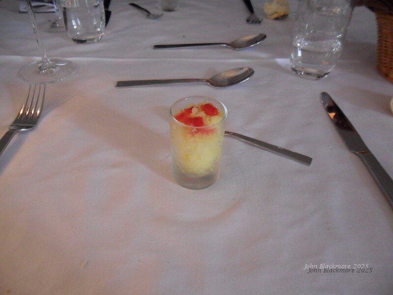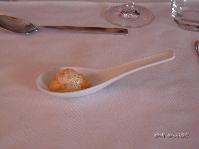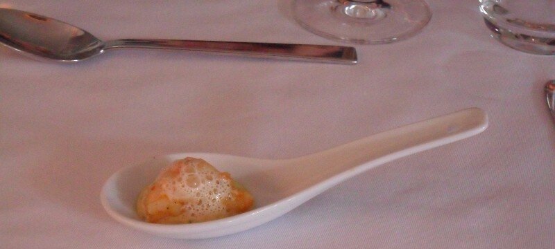 Since we visit so infrequently, we chose the 49€ 5-course menu. Amuse bouche: gamba and polenta