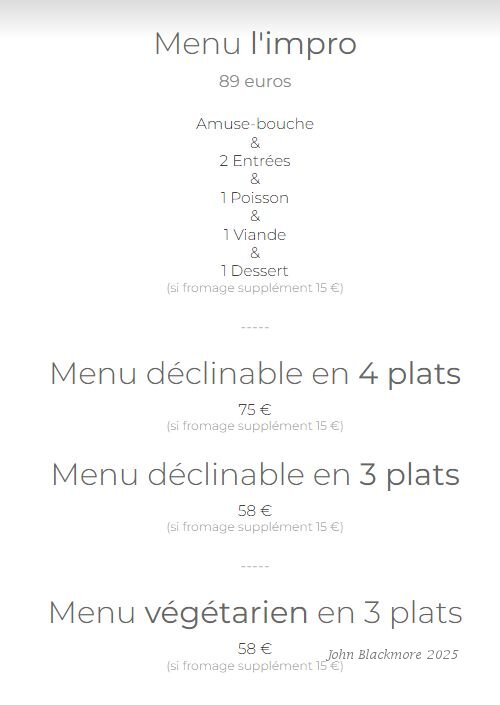 We chose the 89€ Menu l'impro