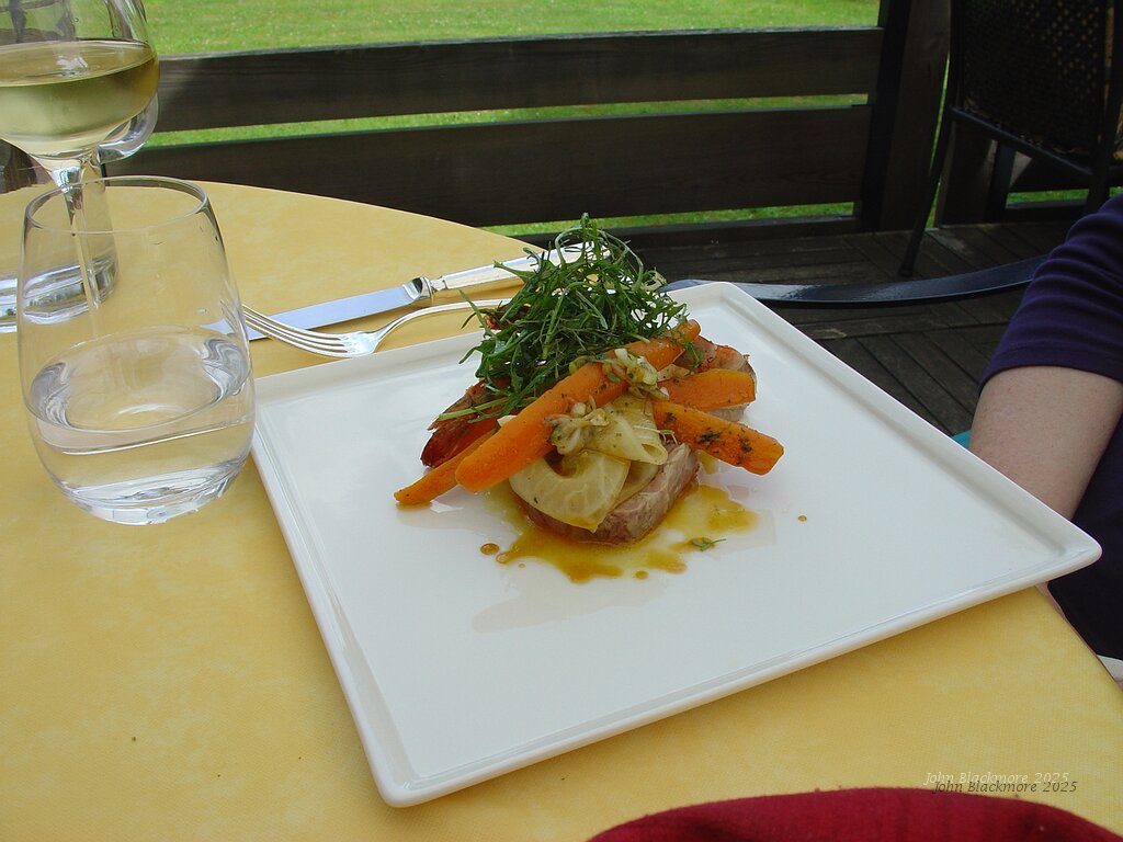 main - Le lapin farci de cailles qui sont farcies d'escargots...Risotto de coquillettes avec les épaules en effilochées