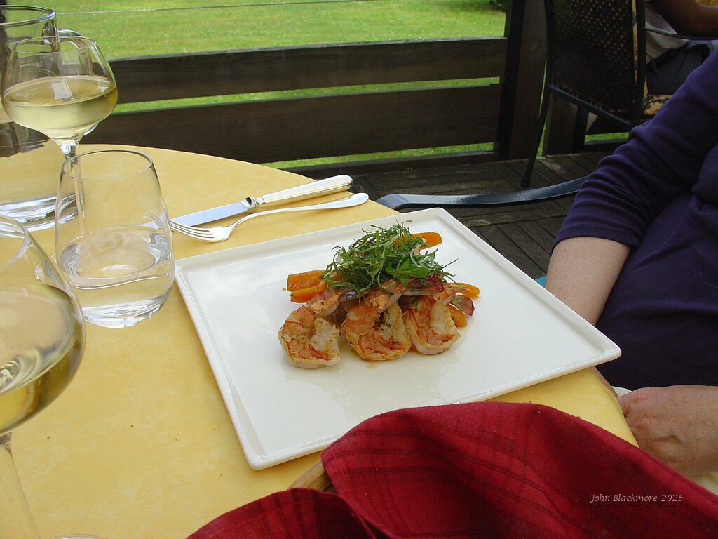 starter - Les jarrets de cochon salés en terrine avec des crevettes Black Tiger Charmoula de carottes et caramel de poivre