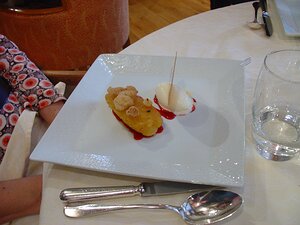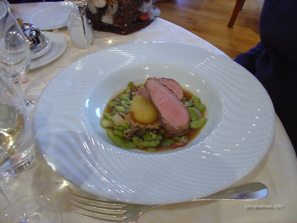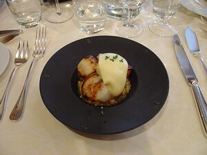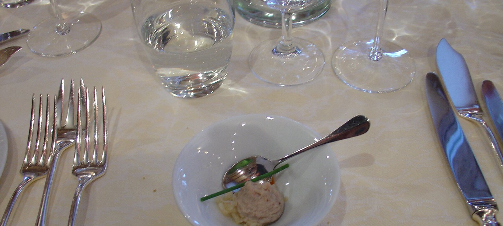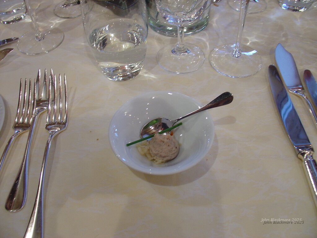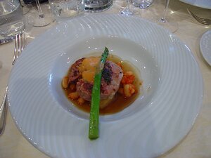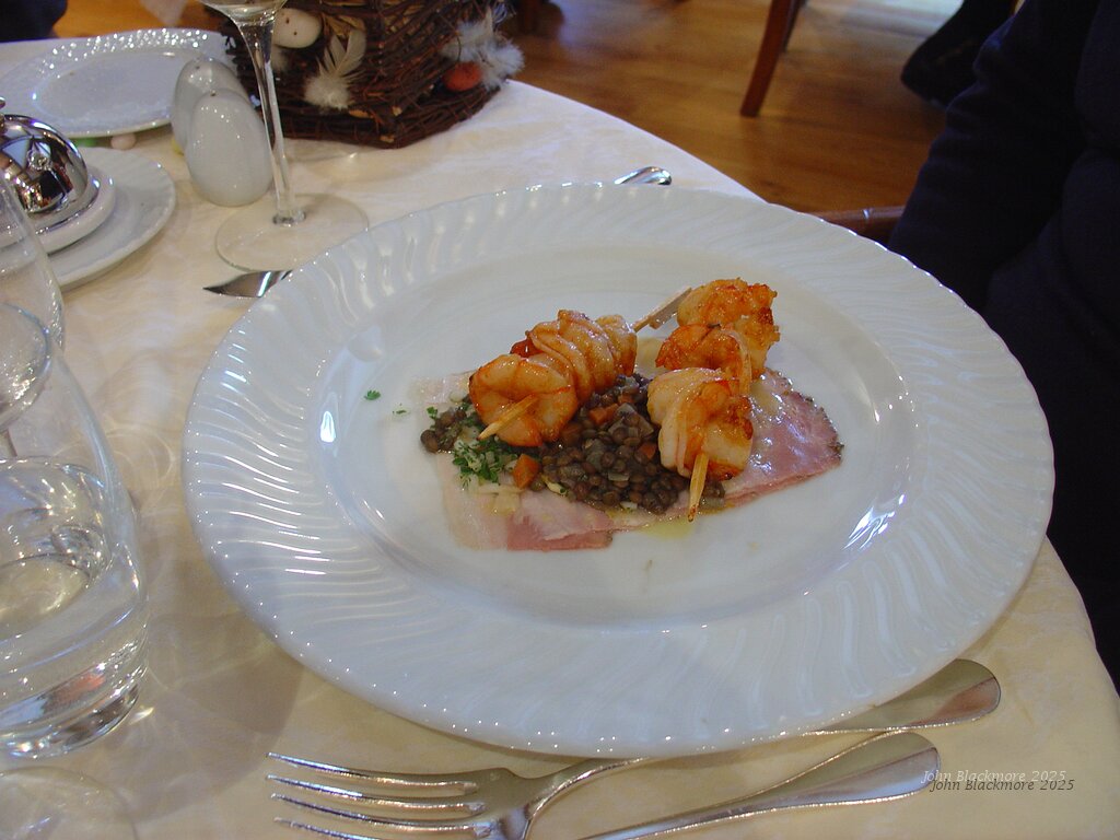 black tiger prawn kebab with pastrami and ginger vinagrette