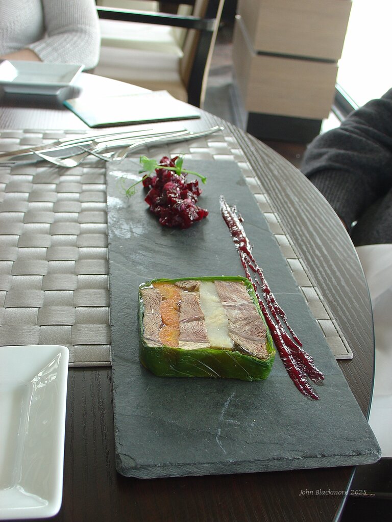 Starter: Pressé de paleron et légumes confits, un ketchup de betteraves rouges-raifort