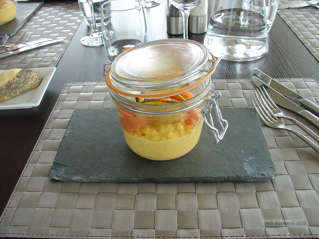 amuse bouche - yellow carrot and cucumber gazpacho