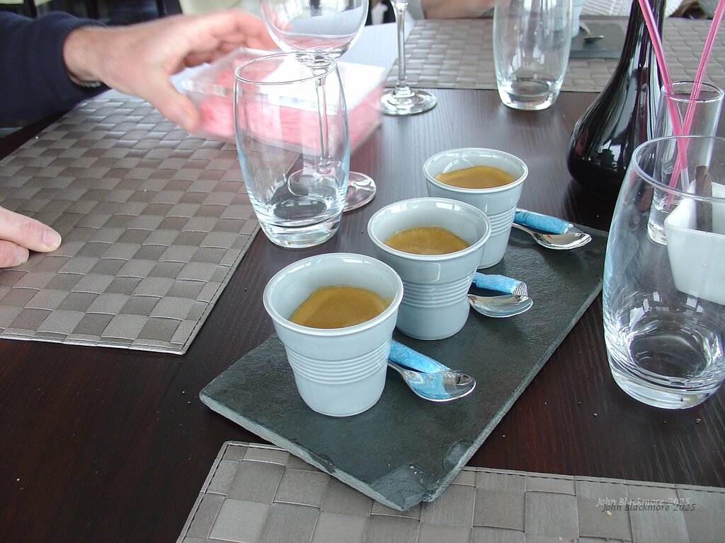 Coffee, passion fruit meringues, chocolates