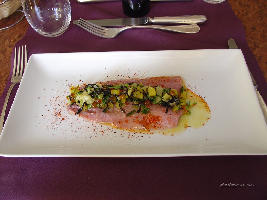 Filet de matjes de l'ile de Sylt, vinaigrette aux aromates au vert d'oignon