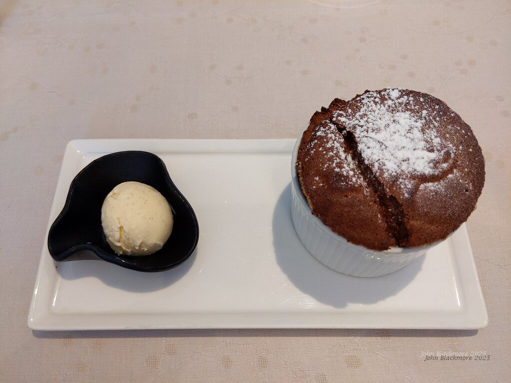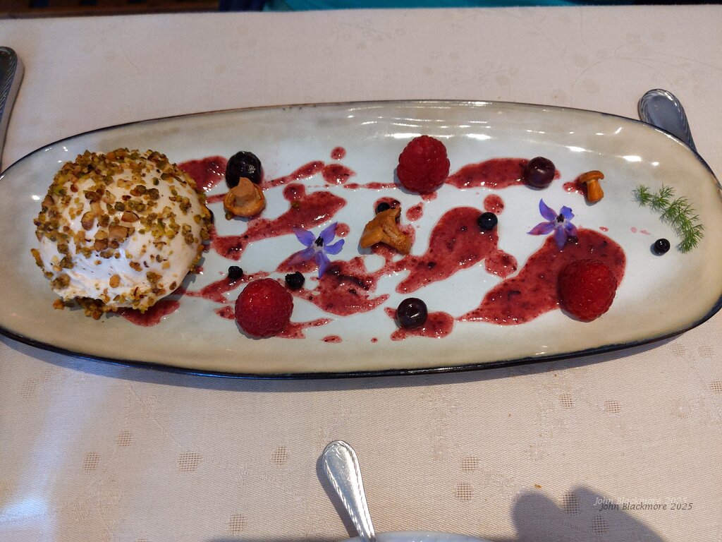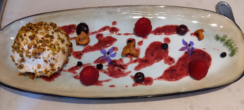 first course: Oeuf parfait, velouté aux champignons crème fumé