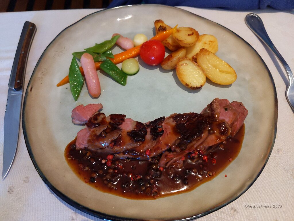main: Magret de canard, aux trois poivres, petites pommes de terre