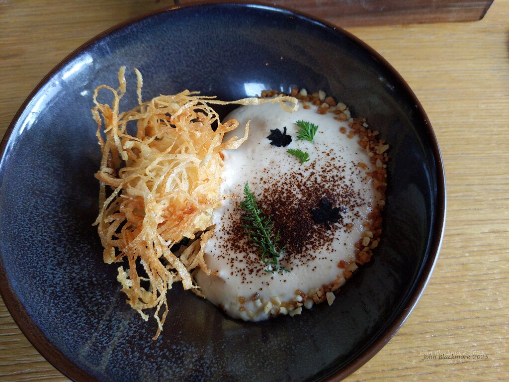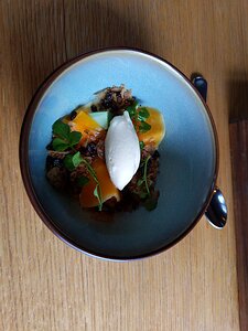 amuse bouche 3: butternut, ham and cream ice, malt seeds