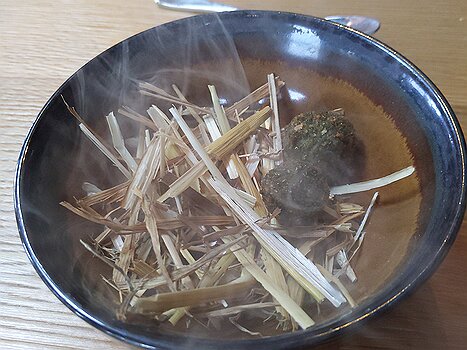 amuse bouche 3: - champignons, herbes sauvages, glace ail, pickled radish