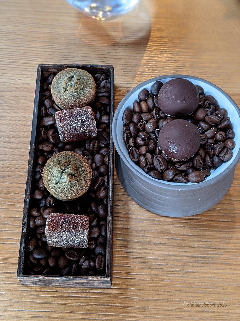 financiers, quetches jellies, carrot and parsley chocolate bonbons