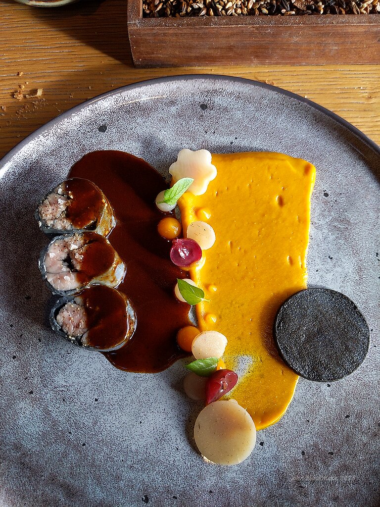 la Perche (from the Rhine and caught by the chef yesterday) / Potimarron / Agrume / Chou de Bruxelles