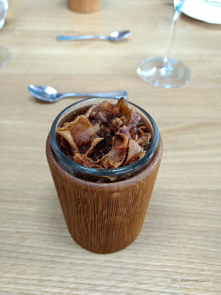 Amuse bouche 4 - radish soup with coffee vinegar and vegetable crisps