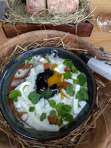 20180621_IMG132617303_MotoG4-JEB L'oeuf bio, tagliatelle de blanc, jaune confit, soubise, piqûre de cendre végétale