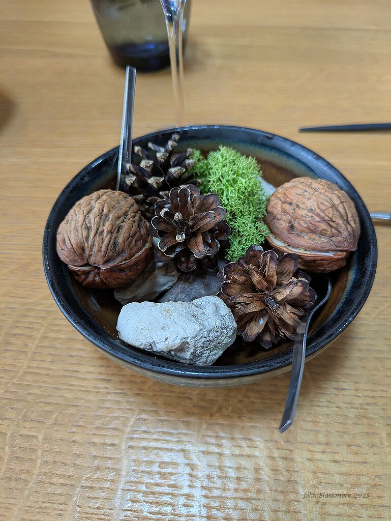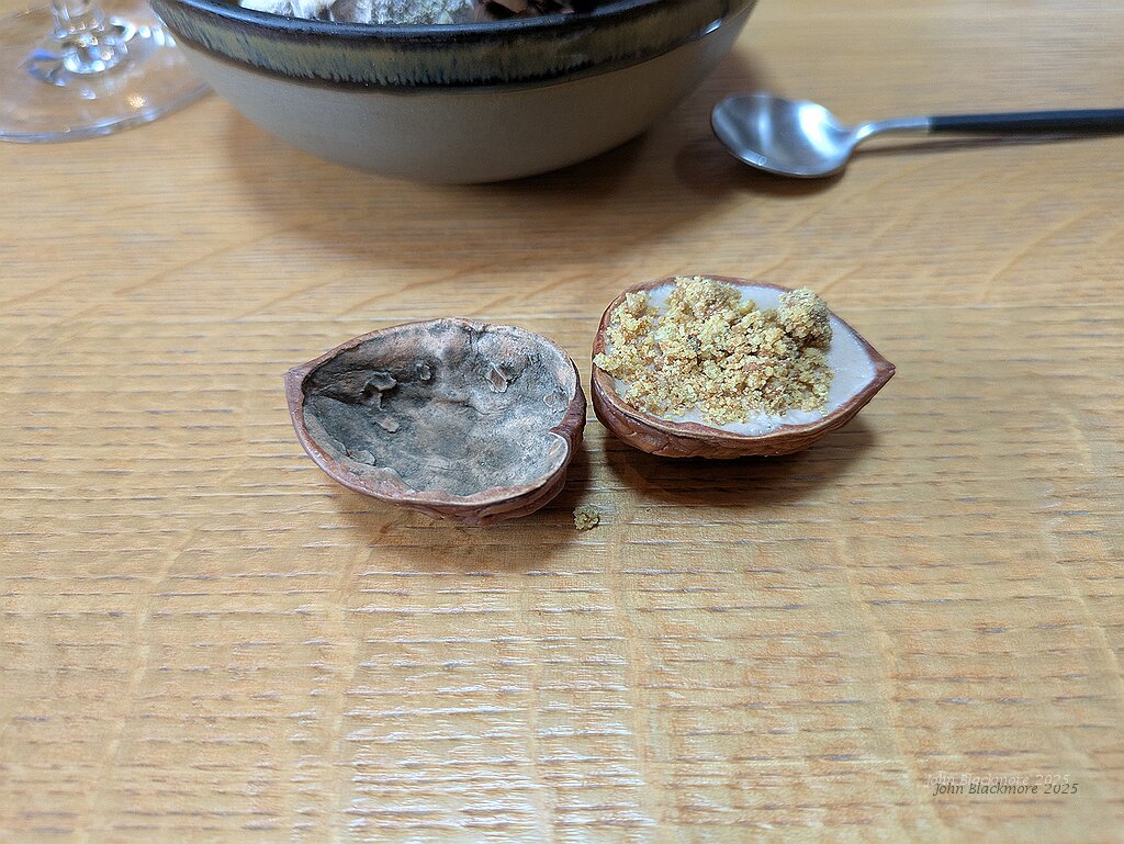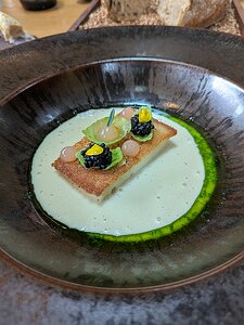 amuse bouche: Balade entre forêt et jardin - herb, egg yolk, pickled vegetables, curry spice