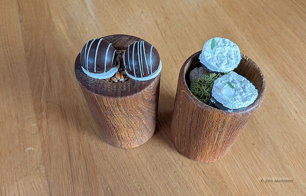 chocolate with coffee cream and amaretto; vervaine and marshmallow