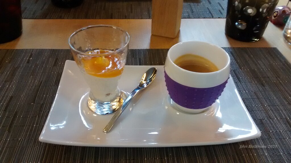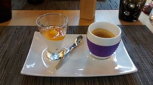 coffee with crème fraîche and agrumes (marmalade)
