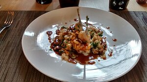 starter: Fine tartelette de noix, topinambour et grenouilles (Menu initiation)