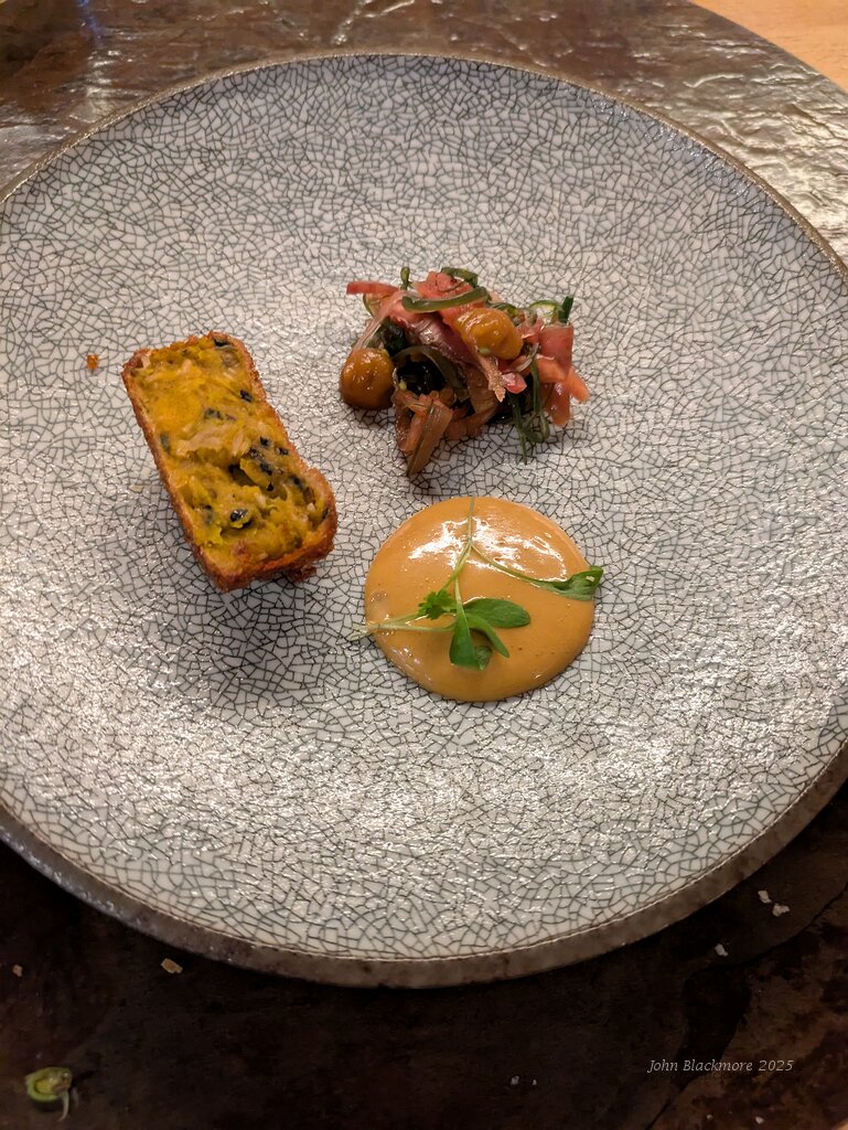 Seasonal Amuse Bouche - porcini mushrooms, artichoke and truffle tart (with Lugny crémant)